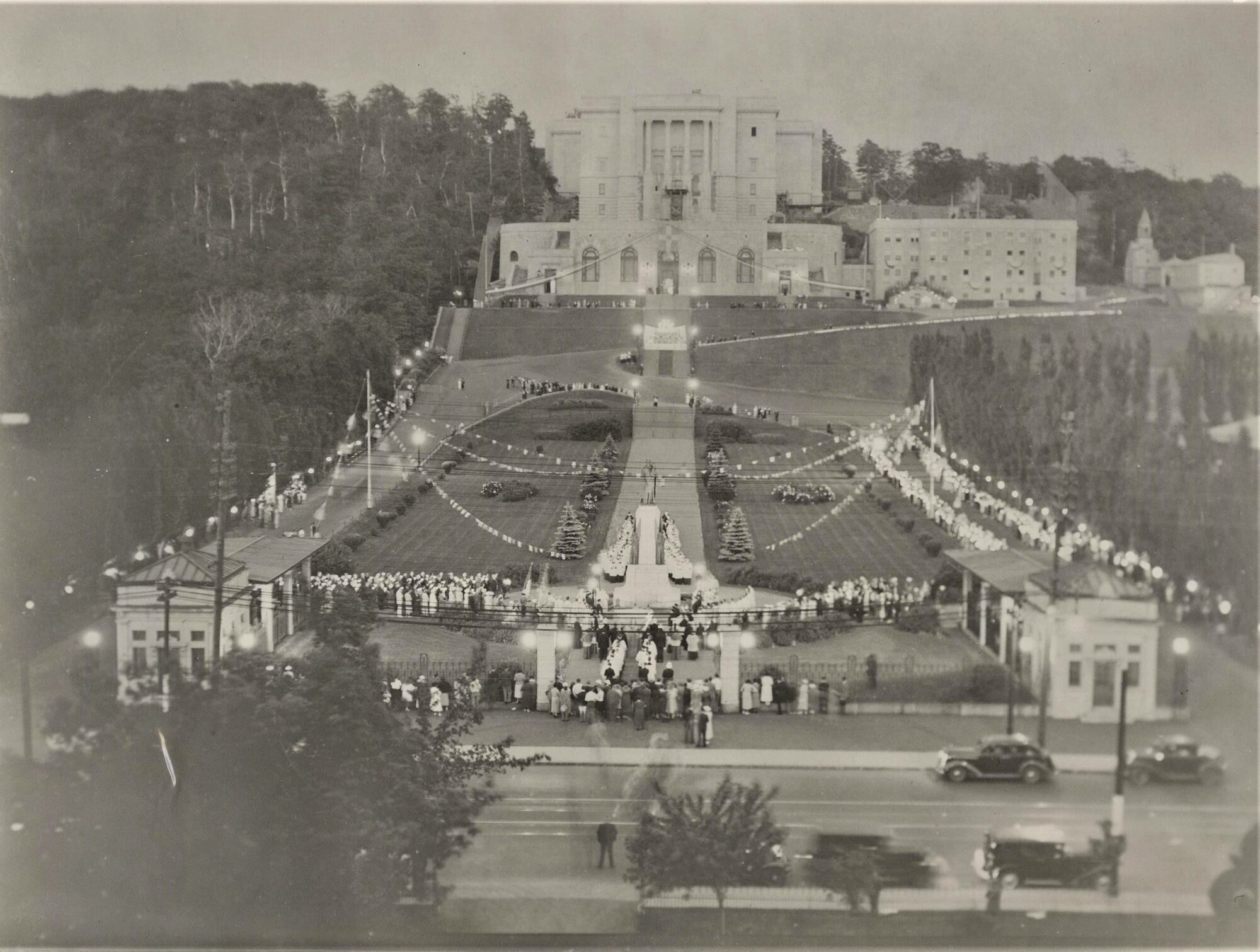 View of the shrine before the construction of the dome. [193-]. Photographer unknown. Archives of Saint Joseph’s Oratory of Mount Royal. 72-2.