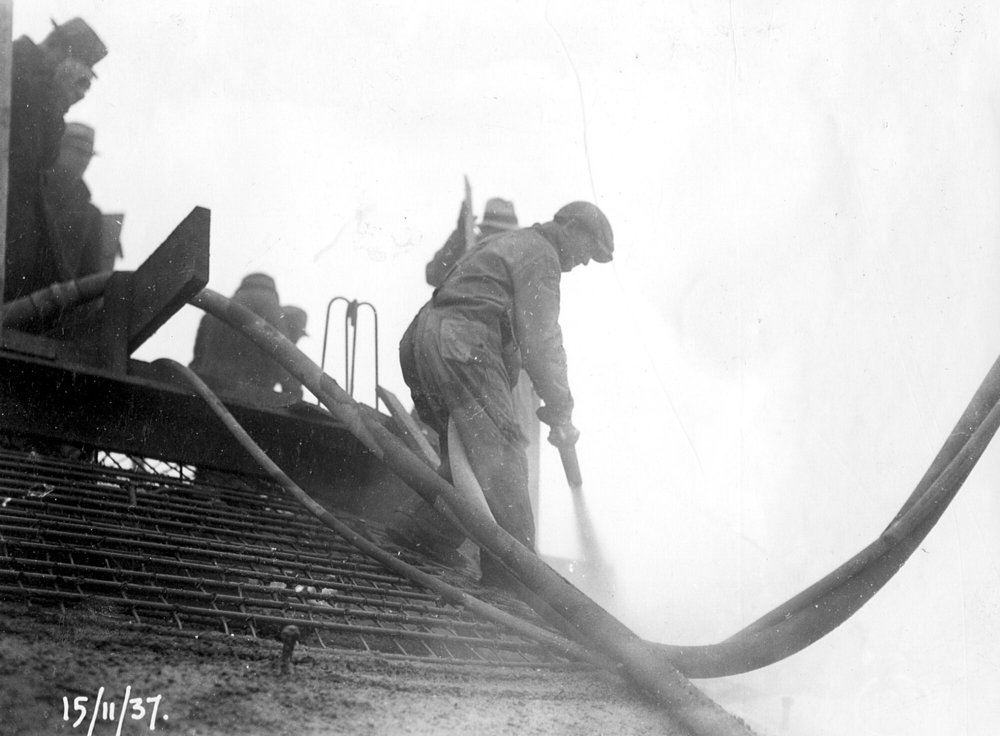 Concrete pouring operation on the last day of the process. November 15, 1937. Photographer unknown. Archives of Saint Joseph’s Oratory of Mount Royal. 99-1b.