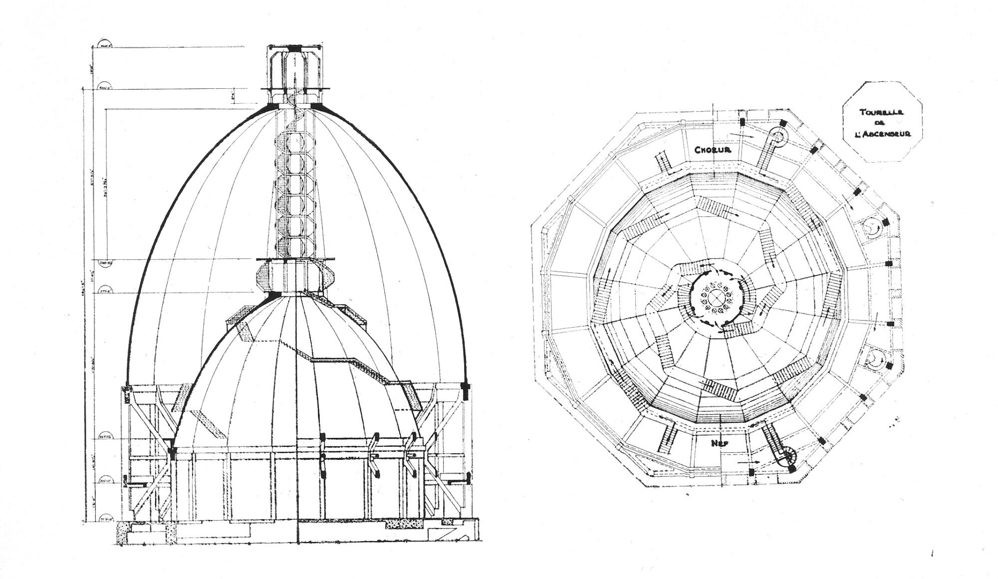 Plans for the construction of the dome. Maxime Cailloux, 1937, Les Ingénieurs Associés. Archives of Saint Joseph’s Oratory of Mount Royal.
