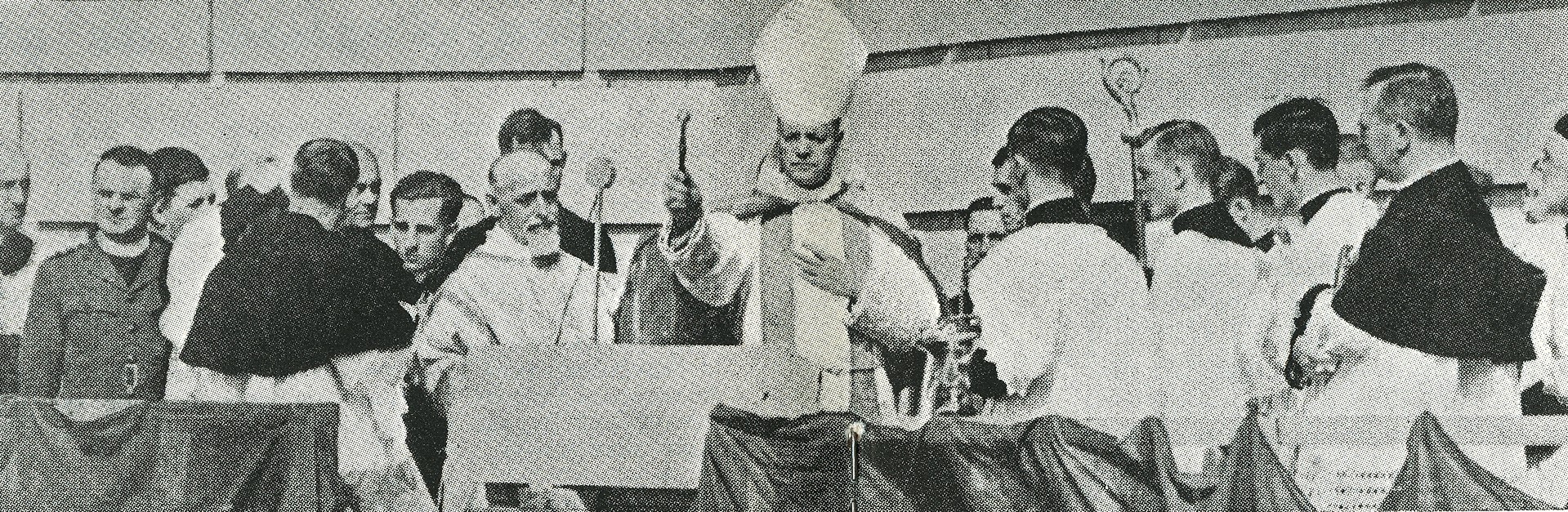 Fig. 5 : The blessing of the first stone of the dome. Les Annales de Saint-Joseph, 1940, p. 262-263.
